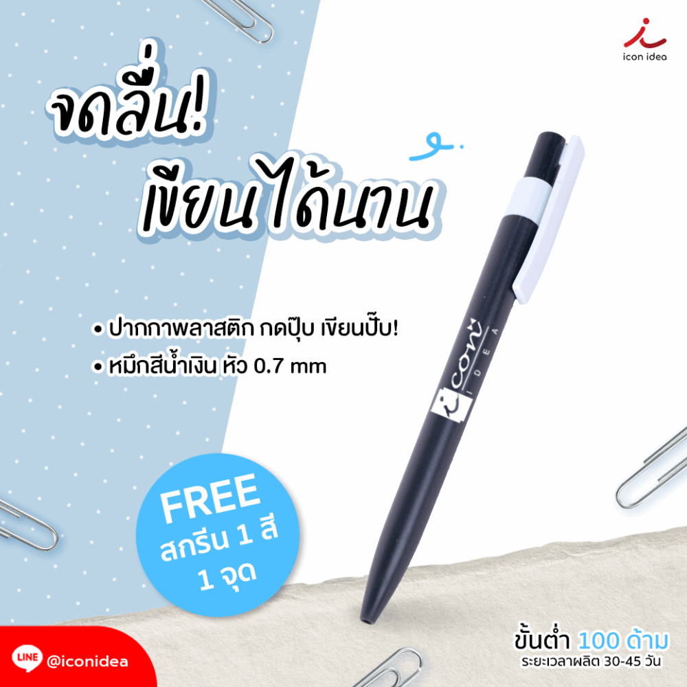 ปากกาลูกลื่น หมึกสีน้ำเงิน หัว 0.5mm ปากกาคุณภาพดี พิมพ์ชื่อ โลโก้ได้ แจกในโอกาสต่างๆ
