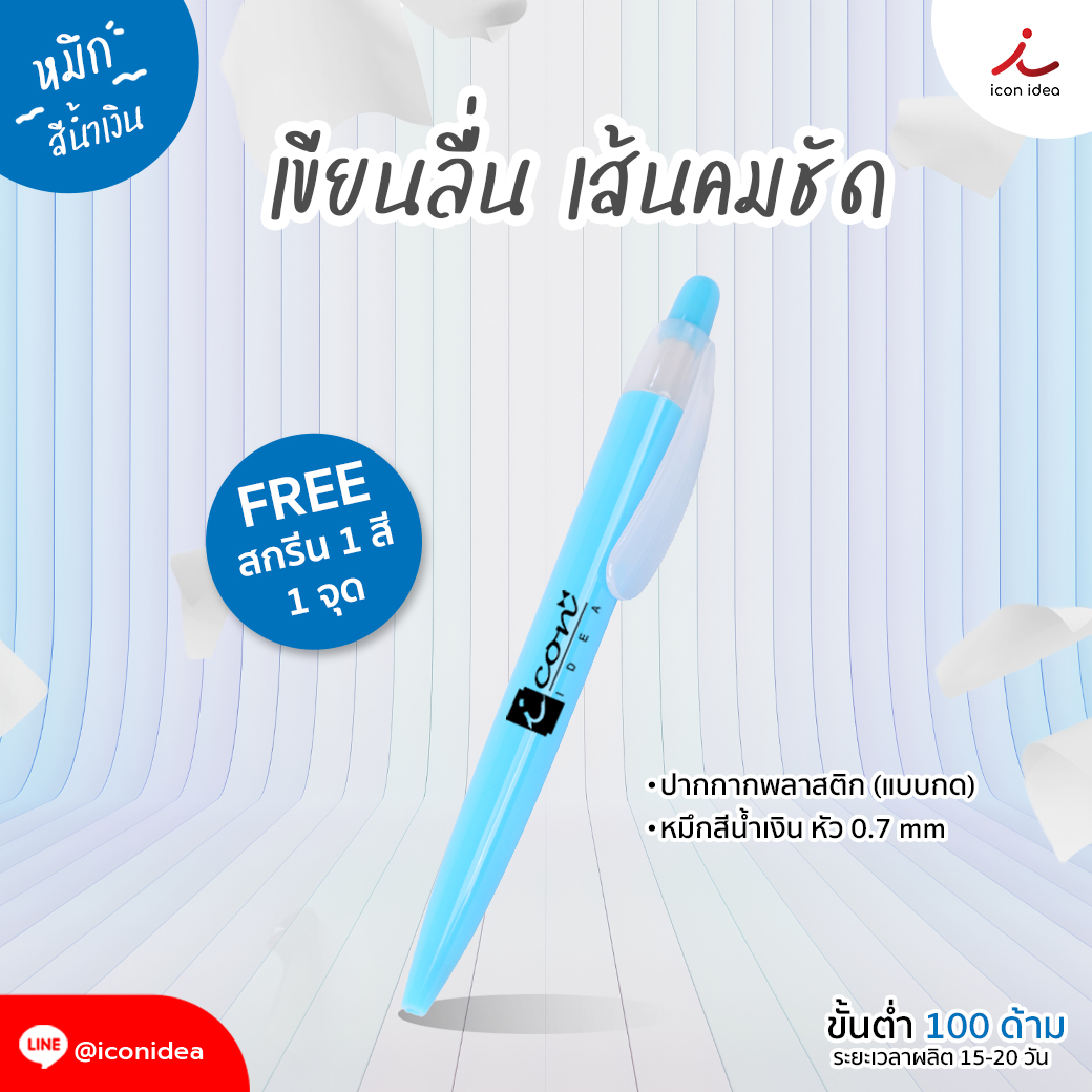 ปากกากพลาสติก (แบบกด) PEN21 หมึกสีน้ำเงิน หัว 0.7 mm.