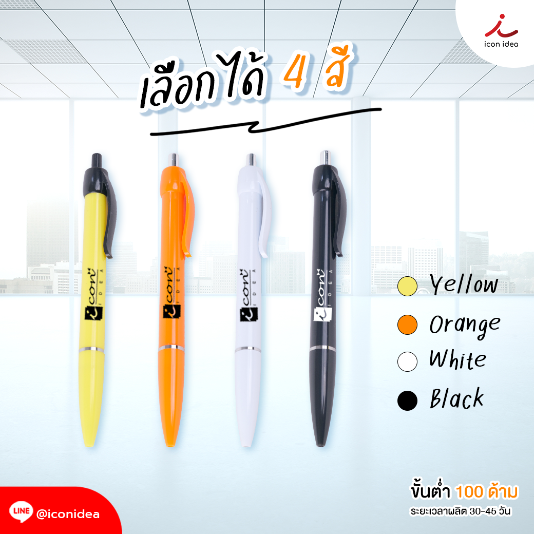 ปากกาพลาสติก (แบบกด) PEN20 หมึกสีน้ำเงิน หัว 0.5mm. ฟรี สกรีน 1 สี 1 ตำแหน่ง ระยะเวลาผลิต 30 วัน ผลิตขั้นต่ำ 100 ด้าม