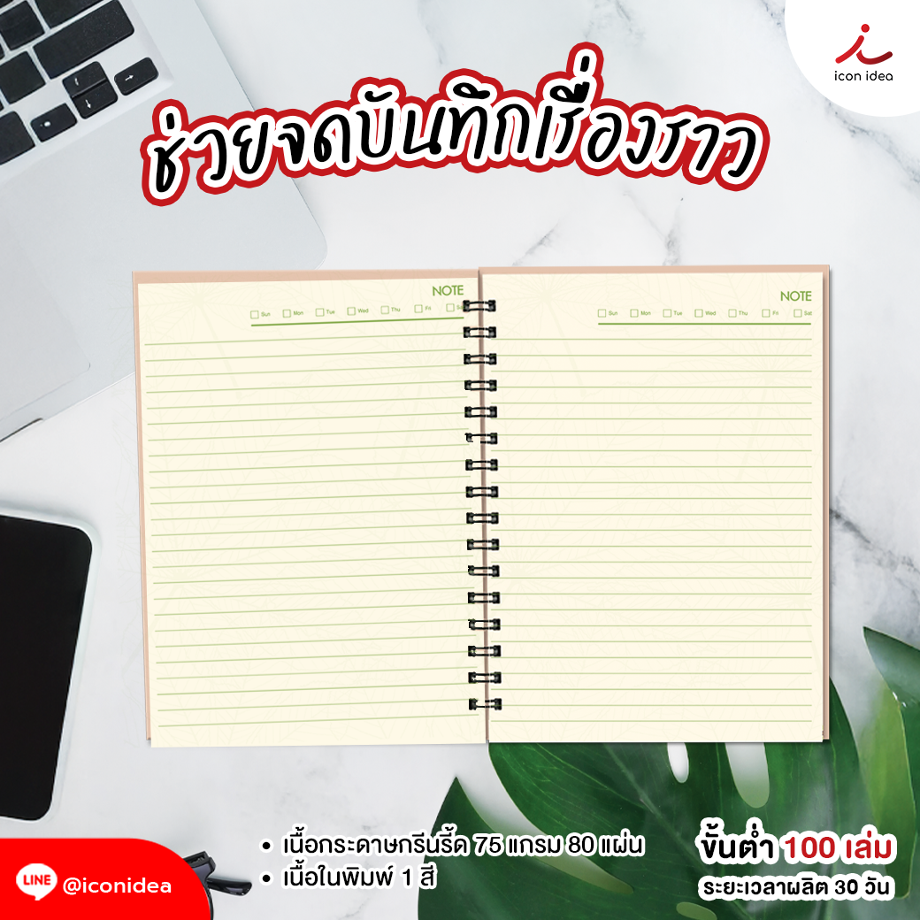 เพิ่มความสดใสให้ทุกไอเดียของคุณ ด้วยสมุดบันทึกปกแข็งดีไซน์สวย ผลิตจากกระดาษรีไซเคิลรักษ์โลก เหมาะสำหรับใช้จดบันทึกงาน เรียน หรือเป็นของขวัญสุดพิเศษให้คนที่คุณรัก 💚