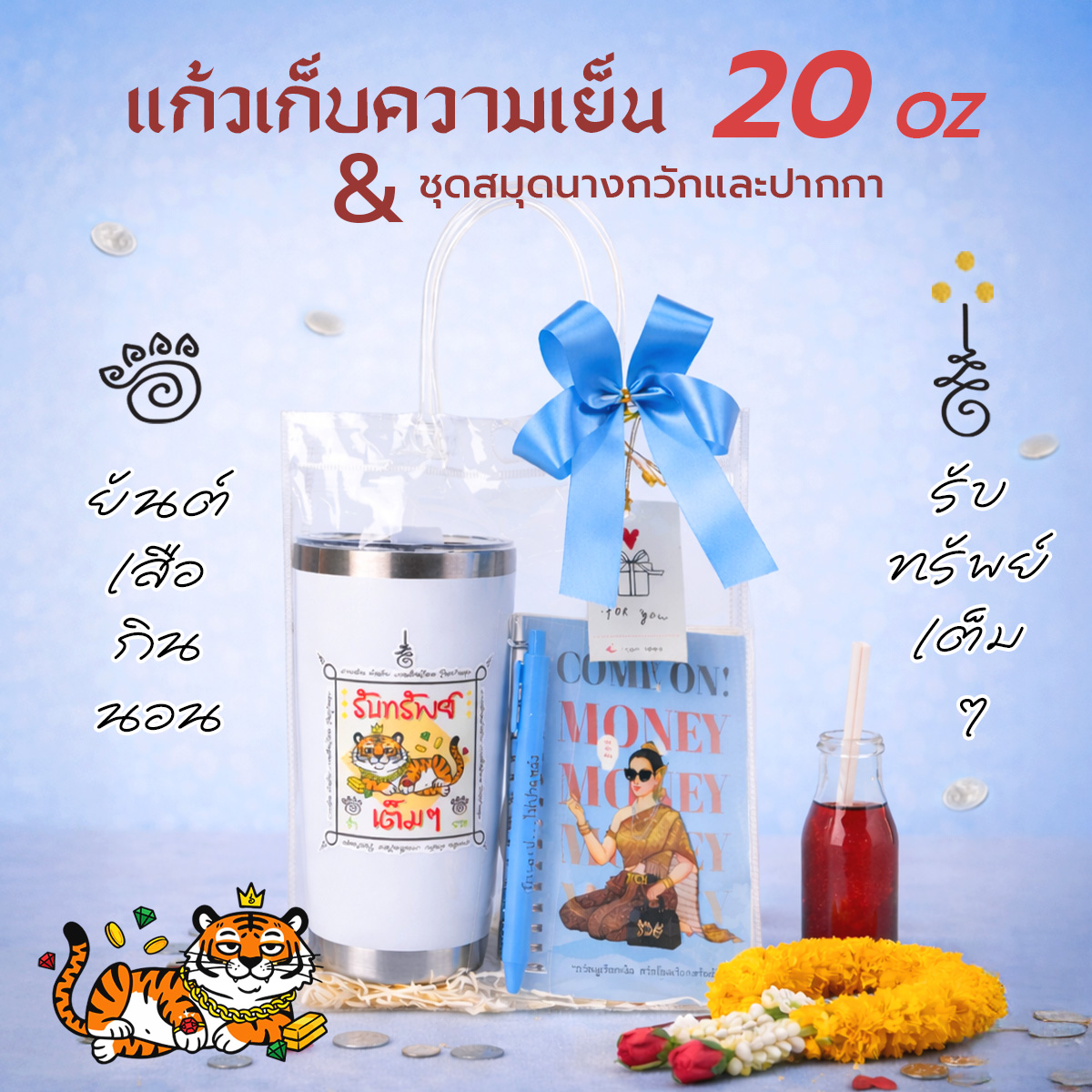 ✨ เซ็ตของขวัญมงคลสุดปัง แก้วเก็บความเย็น 20 oz คู่กับสมุดนางกวักและปากกามงคล ✨