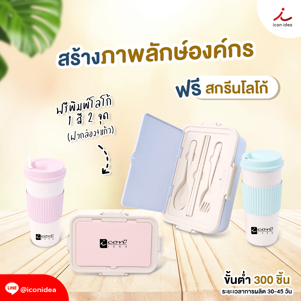 ฟรี พิมพ์โลโก้ 1สี 2 ตำแหน่ง (ที่กล่องข้าว+แก้วน้ำ)